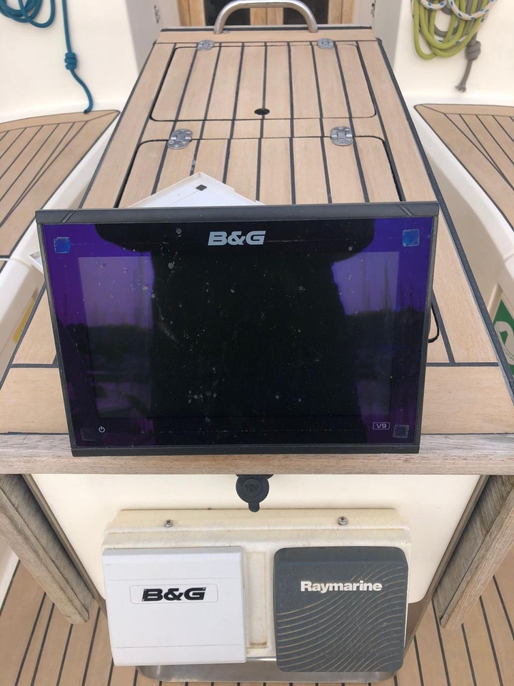 wind indicator, VHF radio, sea charts, plotter with GPS, compass, autopilot